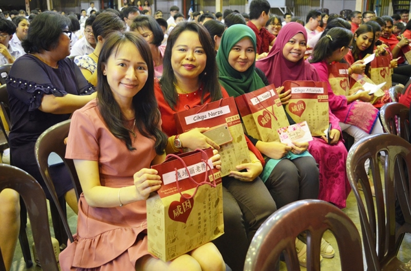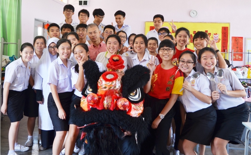 华乐团和武术团呈献表演。 . 全体教职员获得余仁生私人有限公司赠送的新春礼袋。 . 学生在班上热情迎接瑞狮采青。 校友回校与老师和学生一起参与迎春会。 |