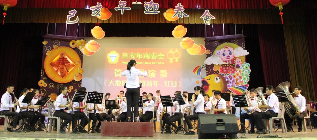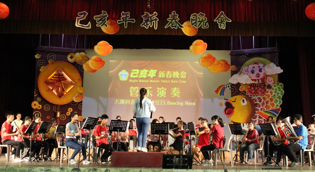 管乐团演奏 . 本校董事长黄亚珠在晚会上致词时说,要办好一所学校,要有良好的硬体建设与师资队伍、规范的管理体制,以及注重校园文化、校园精神,还有教职员的价值要求,这些都是董教职员共同努力的方向。 他说,本校在今年将继续完善硬体设备,包括图书馆、宿舍、物理室和化学室,以及扩建食堂等工程,提升校园的教学环境;同时也加强师资培训工作,今年3月本校将主办到上海闸北第八中学进行“成功教育”的培训课程,在7月,会安排上海闸北第八中学的老师到来本校主持培训课程,参加者来自全国华文独中的老师,此外,今年3月本校的汽车维修班和文美班的老师和学生,将到天津职业技术师范大学参加培训,另一方面,本校也会加强升学辅导与招生工作,为莘莘学子开拓更广阔的升学渠道。 他表示,在国内外大环境都在变化的关键时刻,我们要掌握机遇,审时度势,把华文教育的发展推向另一个高峰。因此,本校将全面支持和配合由新纪元大学学院推动的“华教200年纪念”系列活动,包括华教感恩谢师宴、天津滨海浪花艺术团文化汇演、天行健中文大奖2.0、世界华文教育论坛、起飞音乐创作专辑推介仪式、东南亚华人与新文化运动研讨会等。 他指出,这些活动项目整合了文教议题的研讨、尊师重道、文化表演、艺术创作等元素,其中《世界华文教育论坛》项目,主要是探讨与了解当前世界,特别是东南亚华教的发展状况,并为马来西亚的华文教育的未来开创新局面。 神采飞扬育龙岗 育才独中办精彩活动贺新春