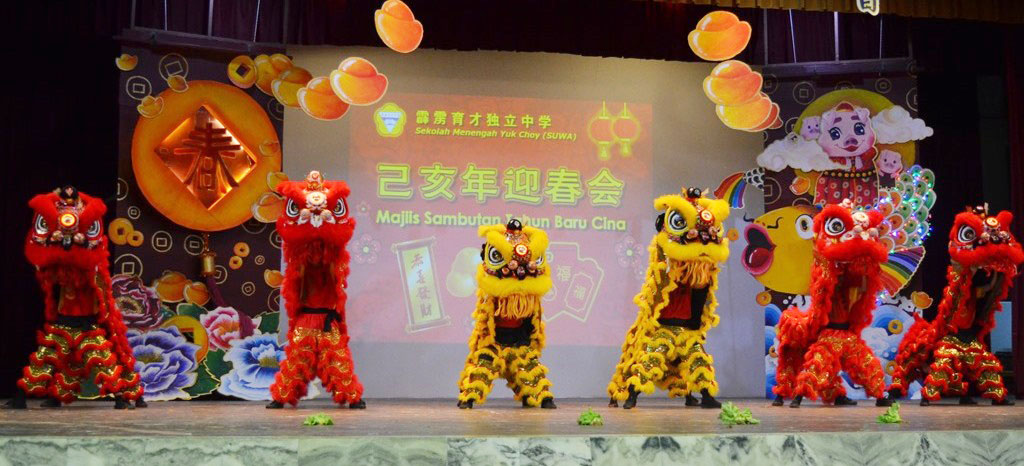 2019 己亥年迎春会 2019年2月3日发布 管乐团演奏新年歌曲,掀开迎春会节目表演序幕。 . 本校配合农历新年到来,于2019年2月1日(星期五)举办己亥年迎春会,精彩活动有管乐演奏、华乐演奏、武术表演、舞蹈表演、刘于恩同学演唱、瑞狮点睛,还有园游会和校园采青等。校园内布置得春意满盈,董事及教师穿着红彤彤的衣服,学生也特别地欢喜,还有很多校友回校一起参与迎春会,整个校园充满浓烈的过年气氛。 出席迎春会的嘉宾包括九洞再也国民型中学校长依布拉欣末迪亚,本校董事长黄亚珠、副董事长潘照南、覃介邦、郑荣南,董事会总务王瑞国、副总务张文惠等。 黄亚珠董事长致词时说,育才独中这些年来硬体及软体的建设,都不断地提升和力求进步,这一切都离不开全体董教职员、家长与学生们的共同努力,更离不开社会各界人士的支持。本校在新的一年将继续完善硬体设备,如图书馆、宿舍、物理室和化学室,以及扩建食堂等工程,提升校园环境。 另外,他感谢本校副董事长潘照南、拿督斯里李友成、郑开益、郑荣南、黄俊来、覃介邦和张德常赞助6头新狮,让本校龙狮团今年可以使用新狮向各界采青贺新春。 嘉宾在为新狮开光点睛后合照,左起为联课活动处副主任刘志忠、联课活动处主任朱荣熙、谢志明副校长、副董事长黄俊来代表黄紫菁、副董事长曾荣南、董事长黄亚珠、副董事长覃介邦、潘照南、九洞再也国民型中学校长依布拉欣末迪亚、苏民胜校长、陈美云副校长、龙狮团负责老师陈润清和房枻鸣。 . 黄亚珠董事长宣布,他和新春晚会工委会主席拿督斯里李友成副董事长,将分别给全体学生一个红包,也就是说每位学生会获得两个红包过年。他勉励学生在新的一年要扩大视野,多了解升学资讯,趁早确定和规划自己的升学方向,加强对相关科目的学习,美好的未来一定属于有准备的人。他也代表董事部派发红包给全体教职员,感谢教职员一年来的辛苦付出。 苏民胜校长致词时说,迎春会也是校友回校日,让校友们回校探望老师,也看看学校的变化,并了解学校的发展近况。他说,本校筹备了多项新春活动,如挥春比赛、迎春会、采青活动、新春晚宴等,他向全体董教职员、家长、学生们及社会各界人士表示感谢。 除了学生呈献表演节目,校方安排在迎春会上,将余仁生私人有限公司赠送的“春节谢师恩”保健礼袋,通过学生献给全体教职员,藉此感恩教职员们的辛劳付出,并鼓吹尊师重道的重要性。另外,迎春会上也进行了校友捐献舞狮鼓棒移交仪式,以及班级新春装潢比赛颁奖仪式。