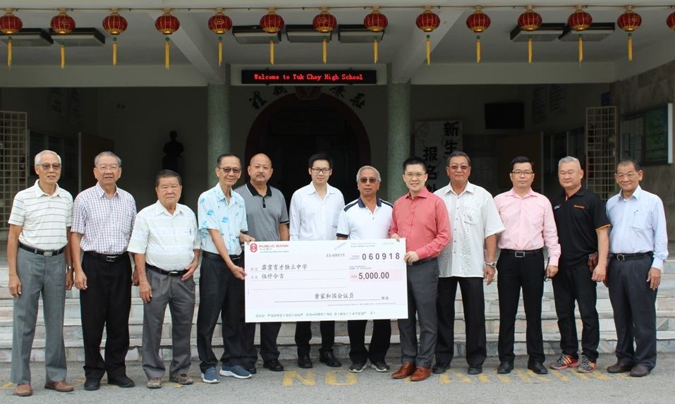 黄家和国会议员赞助5000令吉 支持本校111周年校庆 2018年9月8日发布 黄家和国会议员移交款项赞助本校“111周年校庆”,他祝贺本校越办越好。董事长黄亚珠代表接领,同时提交有关华社反对《2013 – 2025年教育大蓝图》里不利于母语教育发展的文件。 黄家和国会议员在张国耀律师陪同下,莅临本校移交款项5000令吉,赞助“育才111周年校庆”,他祝贺本校越办越好。董事长黄亚珠代表接领,出席欢迎及接领仪式的董事有署理董事长拿督吴国芳、校庆工委会主席拿督高利发、副董事长覃介邦、潘照南、董事会总务王瑞国、财政黄伟生、董事梁祖肇、吴俊隆,以及苏民胜校长。