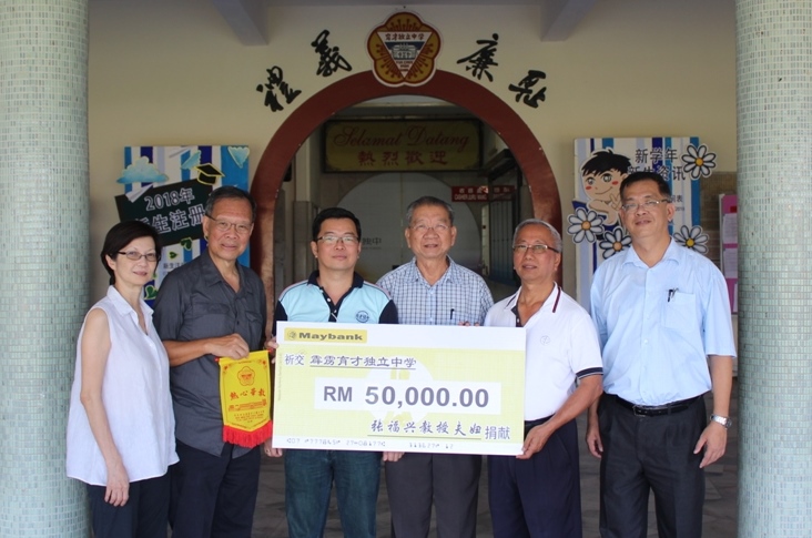 张福兴教授夫妇来访本校 捐献5万令吉 2017年10月19日发布 为祝贺育才独中庆祝育才创校110周年纪念,张福兴教授及夫人范玉芬女士,以张教授的父亲张木英的名义,捐献5万令吉予本校,并祝福校务蒸蒸日上。 张福兴教授是新加坡国立大学卫生系统诊断影像系的高级顾问和负责人,他专注于鼻咽癌的肿瘤研究。他发表了90多篇文章以及多次受邀在国际会议主讲有关课题,目前是UICC头颈癌专家小组(TNM分期系统)的成员。 张福兴夫妇莅访本校,了解校园环境以及学校的发展近况后,赞赏本校优质的学习环境,并捐献5万令吉予本校。他们的莅临受到董事长黄亚珠、董事会总务王瑞国、苏民胜校长以及谢志明副校长的热诚接待。 黄亚珠希望张教授能够对本校的建设与发展提供建议,同时多来往交流,包括为本校董教职员生主讲相关课题。张福兴夫妇表示感到非常高兴能够与育才独中联系,也答应安排时间为学校主讲课题。 张福兴(左二)移交捐款,由本校董事长黄亚珠(右二)代表接领。 左一范玉芬,左三及左四为苏民胜校长和董事会总务王瑞国,右一谢志明副校长。 |