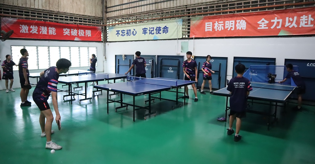 吉他社集训营 2025年6月17日发布 为迎接即将到来的教师节,本校吉他社精心筹备的首次校内集训营于6月13日至15日火热开展。此次集训以提升团员间的默契协作水平为核心目标,致力于为后续演出筑牢根基。 20位社团成员齐聚一堂,在教练的悉心指导下,全情投入到吉他的指法训练与节奏把控的学习中。大家相互切磋、共同进步,以饱满的热情与专注的态度,全力打磨技艺,力求在教师节舞台上绽放最耀眼的光彩,为师生们献上一场精彩绝伦的音乐盛宴。 文案、摄影:陈嘉莹(高二理) 乒乓练习室新场地,新气象
