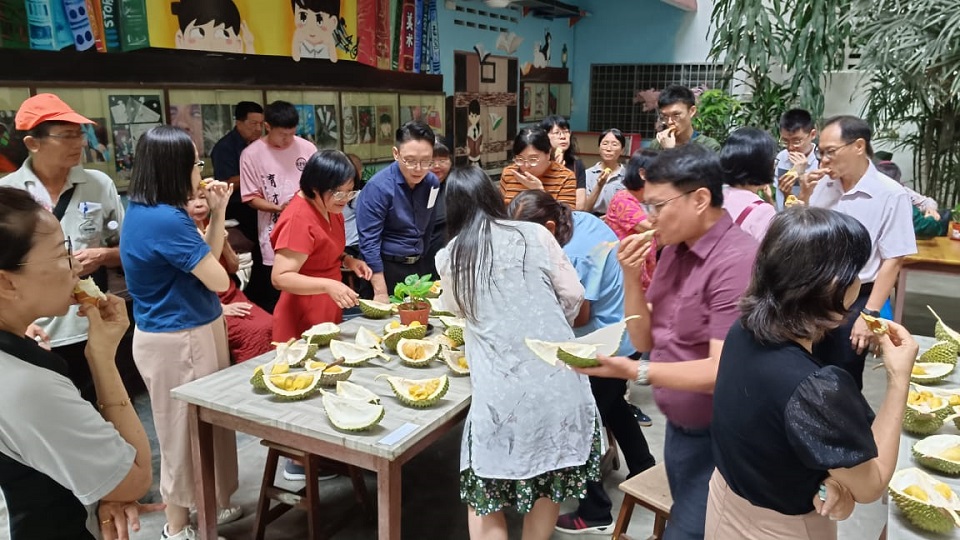 黄亚珠署理董事长犒劳教职员 2025年6月17日发布 本校署理董事长黄亚珠先生为迎接教师节,特意提前备好一顿“榴莲盛宴”,宴请全体教职员共享榴莲飘香,以感谢教职员们孜孜不倦的付出与努力。 他期望教职员们在辛勤耕耘之余,也能好好犒赏自己,放松心情,继续以满满的热忱陪伴学生成长。 吉他社集训营