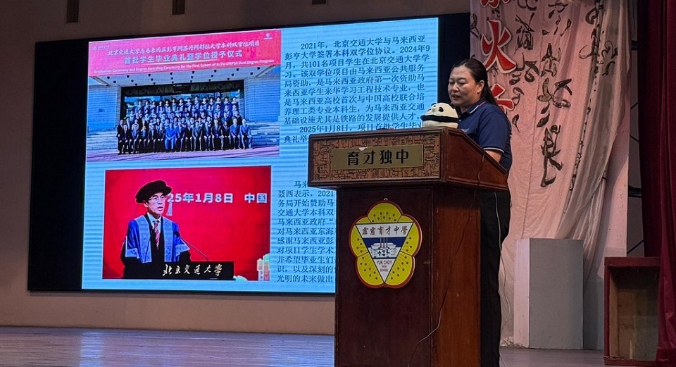 中国高校升学讲座 2025年6月17日发布 来自中国三所高校 — — 北京交通大学、西亚斯学院及杭州师范大学的代表团日前莅临本校,为高三学生带来一场内容丰富的升学讲座,提供第一手的升学资讯与宝贵建议。 本次讲座旨在让同学们更深入了解中国高等教育的优势与多元选择,激发他们拓展国际视野,探索未来升学方向。 代表团成员包括北京交通大学党群工作部部长于杰先生、学生发展与服务部副部长谷玉英女士;西亚斯学院国际教育学院招生办主任徐文钰女士;以及留华同学会副会长苏耀原老师。 本校董事长拿督吴国芳与董事会财政刘子真先生也一同接待来访嘉宾,展现出本校对教育国际化与学生未来发展的高度重视。 透过此次讲座,同学们不仅获取了实用的升学信息,也对中国高校有了更全面的了解,为未来升学之路增添信心与方向。 黄亚珠署理董事长犒劳教职员 宴请共享榴莲