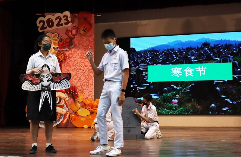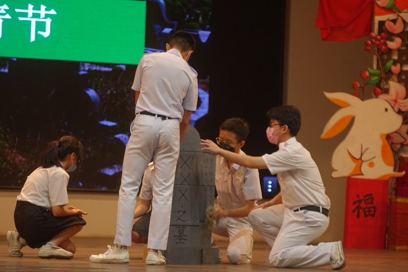 本校高二商一班学生呈献关于清明节的短剧表演 2023年4月5日发布 本校高二商一班的学生于日前周会上呈献了一场关于清明节的短剧表演,让同学们了解有关清明节放纸鸢、扫墓的由来,也提倡缅怀祖先、慎终追远的精神。