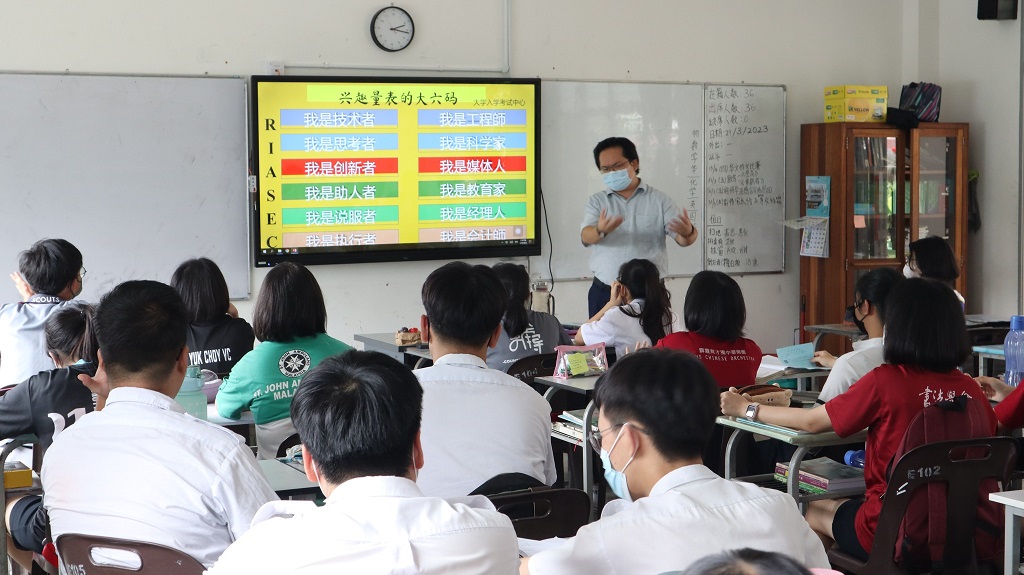 兴趣测量说明会 2023年3月29日发布 本校辅导处主任许环伟老师、助理曾伊铭老师和丘明申老师今天(3月29日)为全体高三的同学进行“兴趣测量说明会”,以便同学们对自己的兴趣和将来升学之路有更清楚的方向。 . 武汉工商学院代表到校进行升学讲座