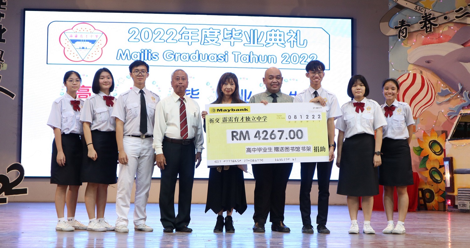 2022年 “青春 · 二重奏” 毕业典礼 2022年12月12日发布 . 本校于12月8日(星期四)举行了初中第87届、高中第73届、文美班第29届暨汽车维修班第30届毕业典礼,主题为“青春 . 二重奏”。 董事、老师、学生、家长、校友等出席观礼,场面盛大。出席者有本校董事长郑美云、署理董事长黄亚珠、副董事长拿督吴国芳、拿督黄美强、董事会财政黄伟生、总务刘子真、副总务张玉和、查账张文义和梁祖肇、董事甯育凤、家教联谊会主席丘耀仁、霹雳育才校友会理事长陈金灼、新加坡国立大学丘才良教授及其胞姐丘秀满等。 本校今年共有216名高三毕业生,和168名初三毕业生。大会安排毕业生发表感言,也播放由他们制作的毕业短片。另外,毕业生呈献表演及演唱毕业歌曲,其中一首《簿子》是由S3C2班毕业生郭宇迅和杨淳词曲创作。 典礼上,毕业典礼筹委会主席岑文琪代表全体高三毕业生敲响了毕业钟。其他仪式包括高初中毕业生代表梁煜靖和王垲铮致词、毕业典礼筹委会副主席蔡浩贤致谢词、颁发毕业证书、移交校友会入会表格、高三及初三毕业生赠送母校图书馆书架、移交“丘林碧珠科学奖及奖学金”支票给吴嘉伟和梅溧庭,还有颁赠荣休纪念品予国文老师黄月星、数学老师郭秀珠、前汽修科主任李国君、前会计部主任曹婉贞、校工赵光兴和张水妹。毕业典礼最后,以全体高三毕业生齐唱毕业生自创歌曲《簿子》拉下帷幕。 仪式之前,毕业典礼筹委会主席岑文琪致词感谢大家抽空出席毕业典礼,也感谢筹委、老师和同学们的努力与配合,使毕业典礼顺利进行。 她表示,在短短三年的高中生涯,疫情就占据了其中的四分之三,身为理科生的她不仅失去了许多做实验的机会也错过了不少有趣的活动,但是人生不免会留下遗憾,而遗憾是人生的常态,无论有多少的不甘与不舍这一切都将随着毕业而拉下帷幕。 她愿毕业生们遵循自己的发展时,本着“千磨万击还坚韧,任尔东西南北风”的精神,以梦为马,披荆斩棘,不负韶华。 “祝全体毕业生毕业快乐,前程似锦,各自努力,顶峰相见。以青春之名,为梦想而战。” 颁发毕业证书 . 董事长郑美云女士致词时,恭喜本校初中三和高中三的毕业生,毕业快乐!她分享道,毕业后步入社会,朋友各奔东西,有的人离乡背井到外地工作,但她鼓励同学们若条件允许务必继续升学,因为知识就是力量,并勉励同学们只要心态正确,身心安定,人生就有很多可能。 她表示,遇到困难时,随时可以回来育才寻求帮忙,育才永远是大家的母校,所有育才学生的家。最后,她祝福同学们身体安康,前程似锦。 颁发毕业证书 . 署理董事长黄亚珠先生致词时提醒高三毕业生,步出校园后即将面对更大的挑战,而成年后,成年人的压力更是无法诉说,需要拥有独立的思想,以及承担更多的义务和责任。 “但同时,你们也多了一份自由选择的权利,你们可以决定与规划自己的人生。所以踏入社会后,为了不留遗憾,凡做任何事情一定要三思而行,慎重下决定。” 他表示,真诚地感谢各位同学这些年来对学校各项工作的理解与支持,对老师们的尊重与爱戴,以及传承学校的文化与精神。他也感谢各位高中三的学生在疫情期间,即使在最关键的三年里,突然从线下课堂教学改变到网上教学,依然咬紧牙关坚持下去,刻苦攻读。他们将会是学弟妹们的榜样,也是育才的骄傲。 “学校将会留下你们奋斗的足迹,以及为学校发展的功劳和汗水。” 他希望各位同学即使毕业离校后,也要心系育才,继续关注母校的发展,多回来看看母校的新变化,以及恩师学友们,追忆这段青葱岁月。 高三毕业生赠送图书馆书架 . 家教联谊会主席丘耀仁先生致词时,感激董事长及所有董事们为学校刚刚筹获的120万令吉建设与发展基金而四处奔波,学校才会有如今完善设备及教育器材。他也恭喜在座的所有老师们为育才栽培出一班有素养,有自主能力的毕业生。 他表示,毕业生经过6年的拼搏刻苦,努力学习,如今已结出优异成果,这是毕业生自己的荣耀,更是父母及学校的荣幸,所谓“今日你以育才为荣,他日育才以你为傲”。他代表全体家教联谊会成员祝愿全体毕业生前程似锦、马到功成、梦想成真。 初三毕业生赠送图书馆书架 . 霹雳育才校友会理事长陈金灼先生致词时,勉励毕业生要思考自己的未来人生道路和创造本身的价值,也呼吁育才校友、师生们踊跃加入校友会的大家庭。育才校友会每逢周日上午至下午2时有书法班、亲子卡拉ok班等活动,欢迎大家前来参与。 黎镇光校长致词时祝贺高三毕业生毕业快乐!他说,无论身处何地,都保持正直善良的天性,肩负爱与责任,做一个正直有担当的人。无论面对任何的困难险阻,都拿出无畏的勇气,以积极的心态、如山的意志,去攀登自己的人生。 至于初三的学生,黎校长表示,高中生涯的课业更加繁重,学生们即将步入旺盛的青春期,除了劝勉大家一心向学,他也希望初三生步入高中的成长过程中,一定要学习锻炼和安定自己的身心,身心修养是做人的根本。 “常说性格决定命运,一个人有什么样的品性,他一生的命运走向也便是如何,所以我们必须极力克服性格中的弱点,完善本身的性格,那么你的人生就在一点一点地发生蜕变。” 移交霹雳育才校友会入会表格 . 颁赠荣休纪念品 . 移交“丘林碧珠科学奖及奖学金”支票给吴嘉伟和梅溧庭 . . 2022年宿舍惜别晚会