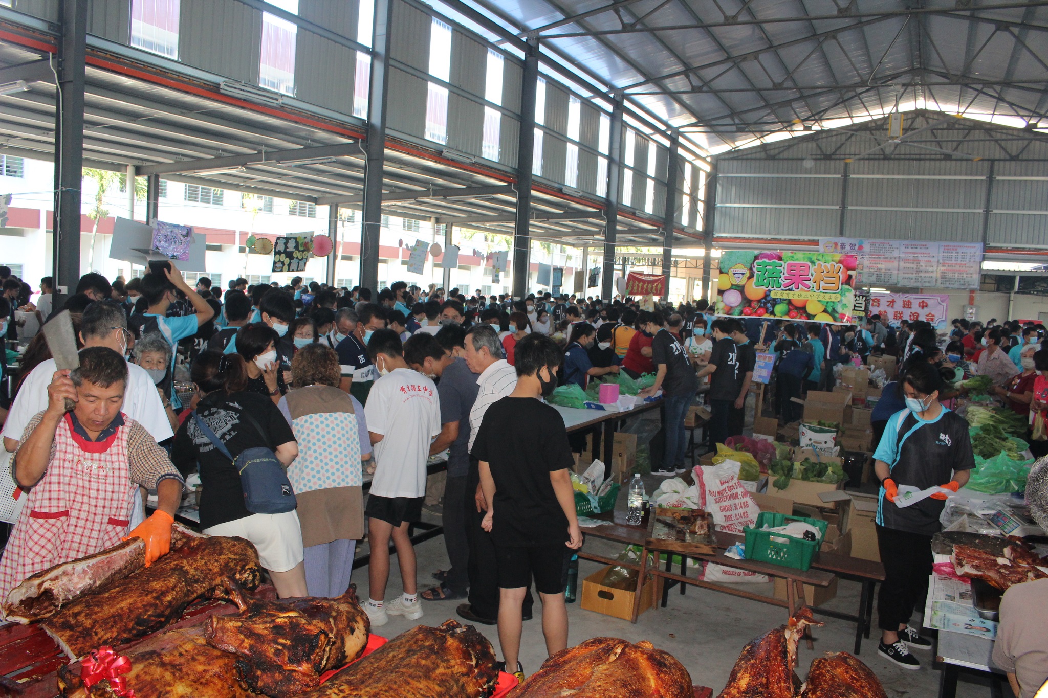 义卖会成功筹获超过16万 育才独中感谢各界人士支持 2022年9月27日发布 阔别两年的本校义卖会于日前在郑美云多元活动中心举行,以筹募教职员福利基金。此活动获得热情广大社会人士、家长和校友的支持,成功筹得超过16万令吉的款项,本校全体董教员生感谢热心人士的鼎力支持。 本校董事长郑美云一早率领董事们一同出席义卖会,并且与署理董事长黄亚珠、副董事长张福兴教授、总务刘子真、财政黄伟生、董事张顺兴等人一起进行简单又隆重的切烧猪仪式,为义卖会拉开序幕。六只烧猪是由瓜拉光的热心猪农 – 陈国生、张顺兴、蔡美记、蔡高等、彭俊祥报效。出席的董事会成员尚有查账梁祖肇、副总务张玉和、董事吴玉芳、蔡建福、马杰顺等。 郑美云(左七)联同黄伟生(左四起)、张福兴教授、黄亚珠、张顺兴(右四起)、刘子真一起进行切烧猪仪式, 为义卖会拉开序幕;仪式上尚有蔡建福(左起)、吴玉芳、黎镇光、张玉和(右起)、梁祖肇、马杰顺。 . 由本校师生所设立的各类义卖会摊位,从当天上午8时许便不断迎来人潮,摊位售卖的物品包括各类食品、饮料、蔬果、日常用品等。参与义卖活动尚有育才独中家教联谊会、霹雳老友联谊会、霹雳育才校友会。 当天也是本校家长日,各班班主任与家长进行面谈,将学生在校的表现,以及各科任老师的评语一一传达给家长知道,而家长也让班主任了解孩子平常在家里的表现。透过交流,班主任和家长更深入了解孩子在校和家里的学习状态,从而帮助孩子成长。 另外,本校图书馆同时举办的献书活动也获得家长们和热心人士的热烈支持,为丰富图书馆藏书出一份力;本校李莱生图书馆翻新工程即将于今年12月完成。 本校联课活动主任刘誌中说,虽然今年受到疫情冲击、经济低靡导致市道冷淡的影响,但是许多商家还是很热心地给予支持,学生们也很主动积极地寻求赞助,这是值得鼓励的。 本校黎镇光校长说,义卖会是全校师生群策群力的活动,大家互相合作配合才让这项活动取得成功。他也要感谢所有捐献货品、捐款及当天在本校设立摊位的商家及家长,他们以实际的行动踊跃支持育才独中和华文教育的发展,让义卖会的气氛更热络,场面更热闹。