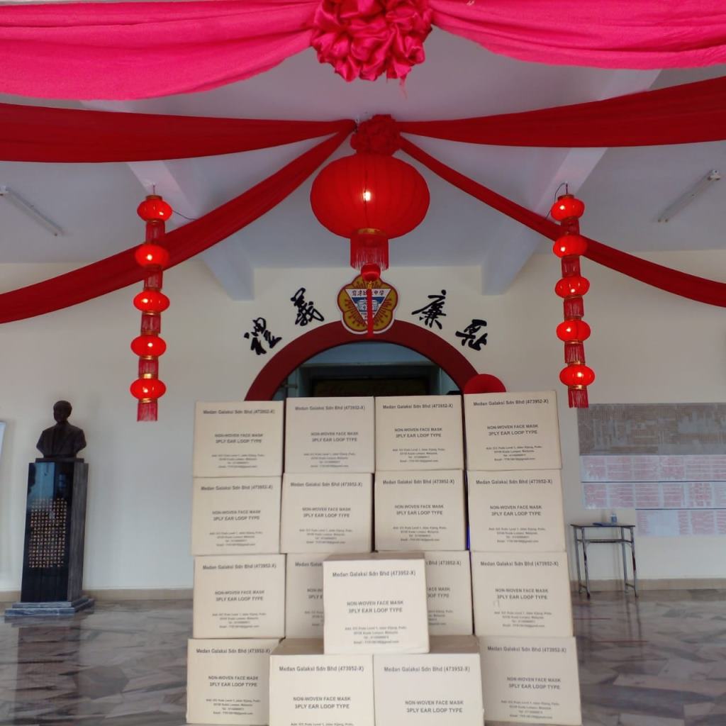感谢 Yayasan Science to Action 的 Dr. Sim 捐赠一批口罩和消毒药水予本校 2022年1月26日发布 感谢 Yayasan Science to Action 的 Dr. Sim 日前捐赠一批口罩和消毒药水予本校,由本校家教联谊会主席丘耀仁先生和事务处主任钟国华老师代表接领。