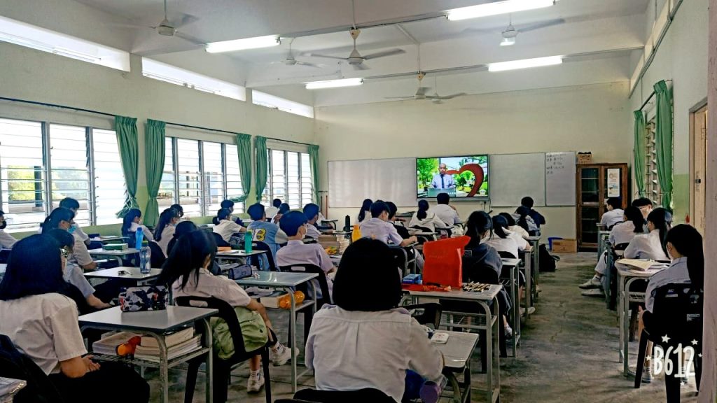 本校共迎来190名新生与插班生,今日全体师生透过线上方式观赏2022年开学典礼的视频,欢迎新生的加入,见证学校新学年的开始。 2022年新学年,本校的新生总人数与2021年不相上下,全校总人数达1120人,而且仍有许多家长不断地询问、报名。 开学典礼视频预录后,教务处请班主任在各班级同时播放。观看视频时,学生都安静地坐着聆听,并且在播放国歌的仪式时也自发地肃立唱国歌,展现精神抖擞的一面。