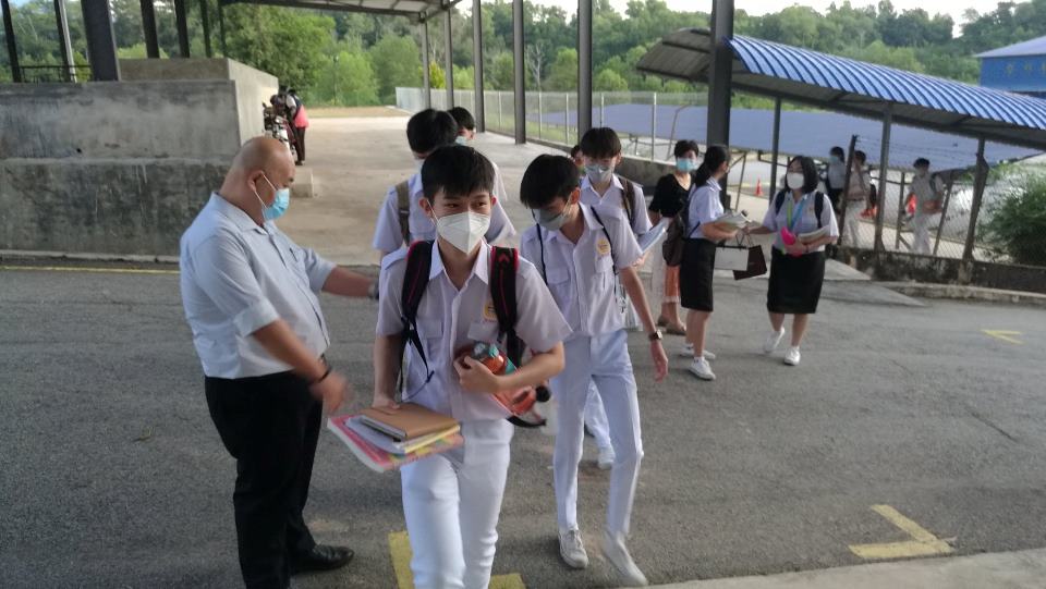 训育主任王淑媚老师说,考虑到多数家长或会选择亲自接送,进入校园的车流量会有所增加。为了避免交通拥挤,学校错开学生的放学时间,她说,学校遵守防疫标准作业程序,仅允许轿车和巴士载学生上下车,禁止外人进入校园。 开学首日,学校也安排学生在各自班级聆听周会报告,告知学生开学须知等事项。 另外,来自布城教育部的官员法鲁法力兹和莫哈末马斯地费诺,在霹雳州教育局官员查马鲁丁和沙林的带领下到来巡视开课情况,并对于校方所采取的开学防疫SOP表示满意。 |