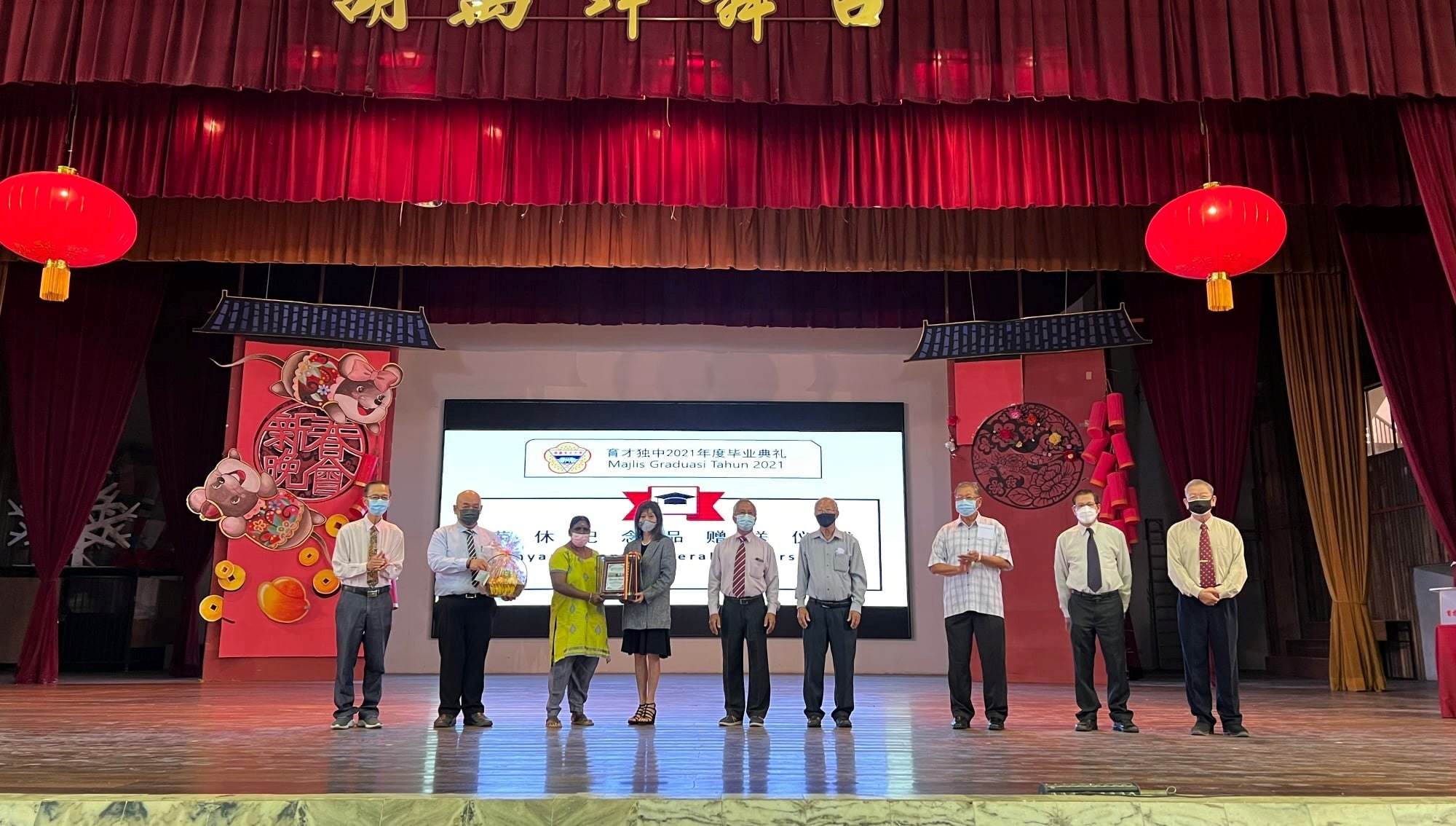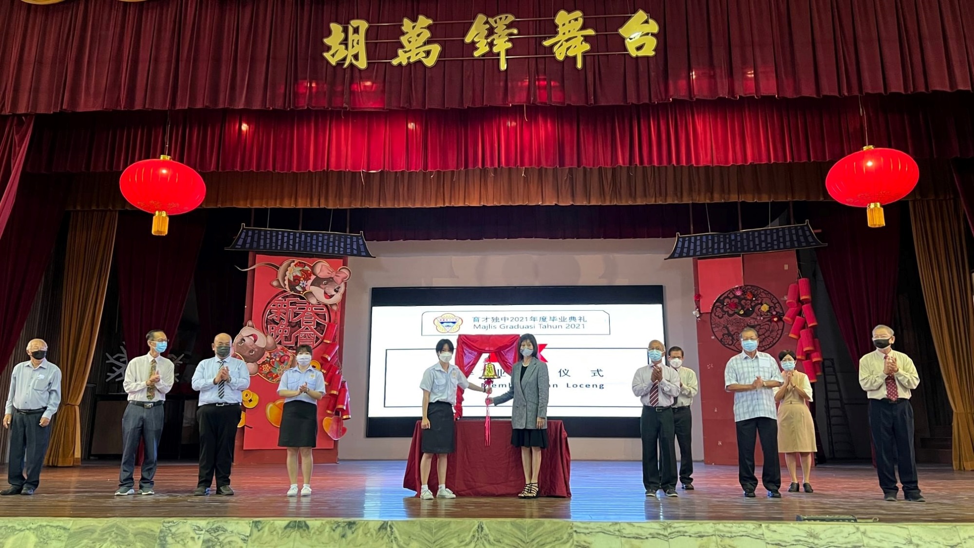 2021年《聚 · 离》毕业典礼 2021年12月28日发布 受到冠病疫情影响,霹雳育才独中阔别一年后在谨守防疫标准作业程序下举办2021年《聚·离》实体毕业典礼,共有175名高三毕业生参与,在老师的祝福下实现了参与毕业典礼的心愿。 主题为《聚·离》的初中第86届、高中第72届、汽修班第29届、文美班第28届毕业典礼,于12月24日在杨金殿礼堂举行。 董事长郑美云在毕业典礼上致词时感性地与毕业生分享本身的求学经验,表示母校的大门永远向毕业生敞开。如果毕业生进入社会后面对问题感到迷茫,可以联络学校,包括她本人,相信大家都能够给予建议。 她分享道,本身在求学时期,每当面对问题时,由于无法与家人很好地沟通,所以更偏向找老师倾诉,从中解惑和取得建议。因此,毕业生离校后,不要感到不好意思,有任何需要,只要学校力能所及都愿意给予帮助。 另外,她希望毕业生继承华校的优良传统,饮水思源,对家庭、母校、社会做出贡献;祝愿毕业生以豁达的态度和积极正向的心态面对未来一切挑战。 黎镇光校长致词时恭贺本届高三毕业生顺利完成学业和统考,并勉励他们纵使未来人生路上充满许多挑战,也不要害怕,要勇敢去面对。 他提醒毕业生在未来追寻梦想的道路上,谨记当个善良和负责任的公民;切记人生路上要不断精进自己,只有通过学习,人生才会更加精彩。 家教联谊会主席丘耀仁前往雪州进行水灾赈灾,不克出席毕业典礼,由该会副主席王淑媚老师代读致词稿。他祝愿毕业生带着师长的叮咛与祝福,实现自己的梦想,开始新的旅程。他也感谢育才独中每一位尽心尽力的师长,教导孩子们正确的学习态度与方式,成为一群经得起考验的孩子。 育才校友会理事长陈道恭致词时祝愿毕业生不管是在升学或就业都能继续大放光彩。他呼吁大家积极加入校友会的大家庭,共同捍卫华文教育,一起努力协助母校的发展。他也呼吁校友们要珍惜接下来的聚会时光,待疫情稳定及防疫限制放宽以后,多回母校走走。