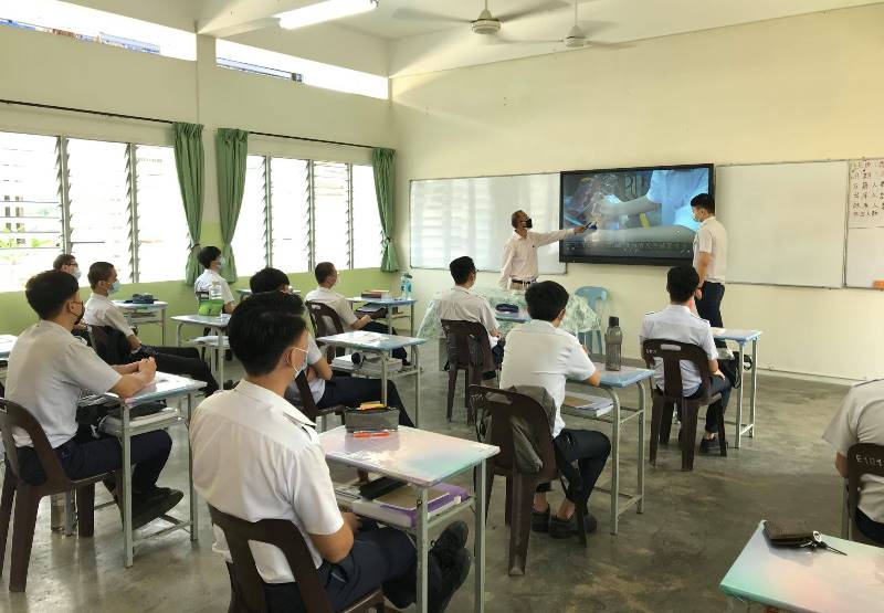 黎校长表示,高三学生总人数为174人,学生复课出席率有94%,让人感到欣喜。他说,高三学生将在12月中旬面对高中统考,能够顺利返校与老师一起进行面对面的实体学习是非常难能可贵的事,希望高三学生抓紧机会为统考做最后冲刺。 他感谢所有家长、学生、教职员的配合,妥善照顾本身的健康,并且遵守学校复课标准作业程序,让学校顺利复课。 另外,教务处、训育处、辅导处等行政部门老师也向复课学生报告,提醒学生严格遵守防疫标准作业程序,保持社交距离;同时提醒学生返校复课后,一下子从网课进入到高强度、快节奏的集体学习方式,务必进行身心调适,若面对身心灵或学习上的问题一定要及时向老师反映。 今年初由于我国疫情严重,教育部指示学生留在家里上网课,学校被迫关闭,直至10月份开始,才逐步开放让各年级学生返回校园复课。