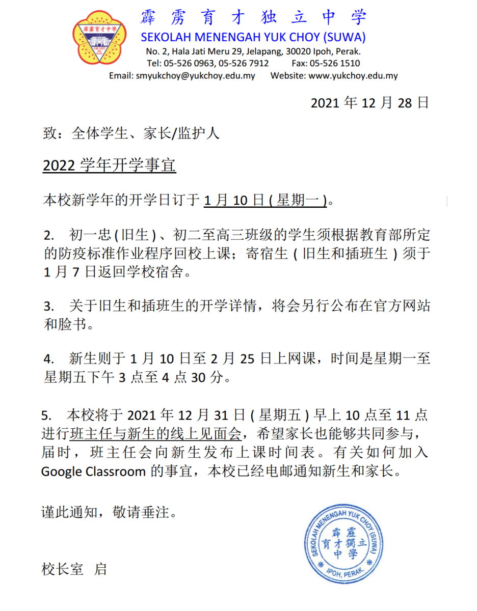 学年开学事宜