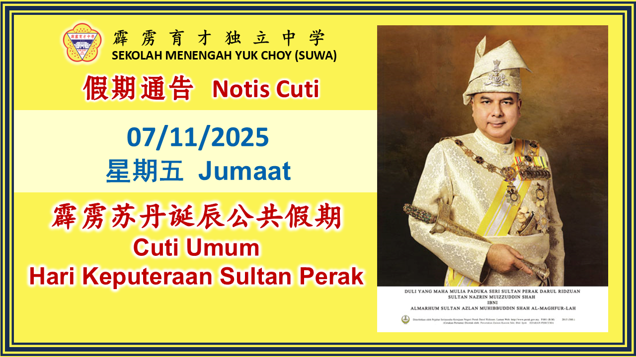 【通告】霹雳苏丹诞辰公共假期: