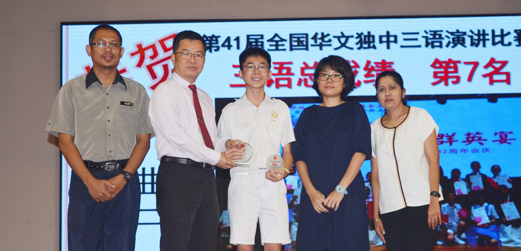 届全国独中三语演讲比赛:初中组华语优胜奖(第八名)、三种语言优胜奖(第七名)