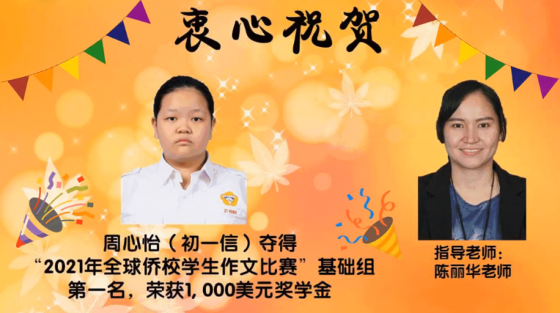 年全球侨校学生作文比赛中,获得基础组第一名!