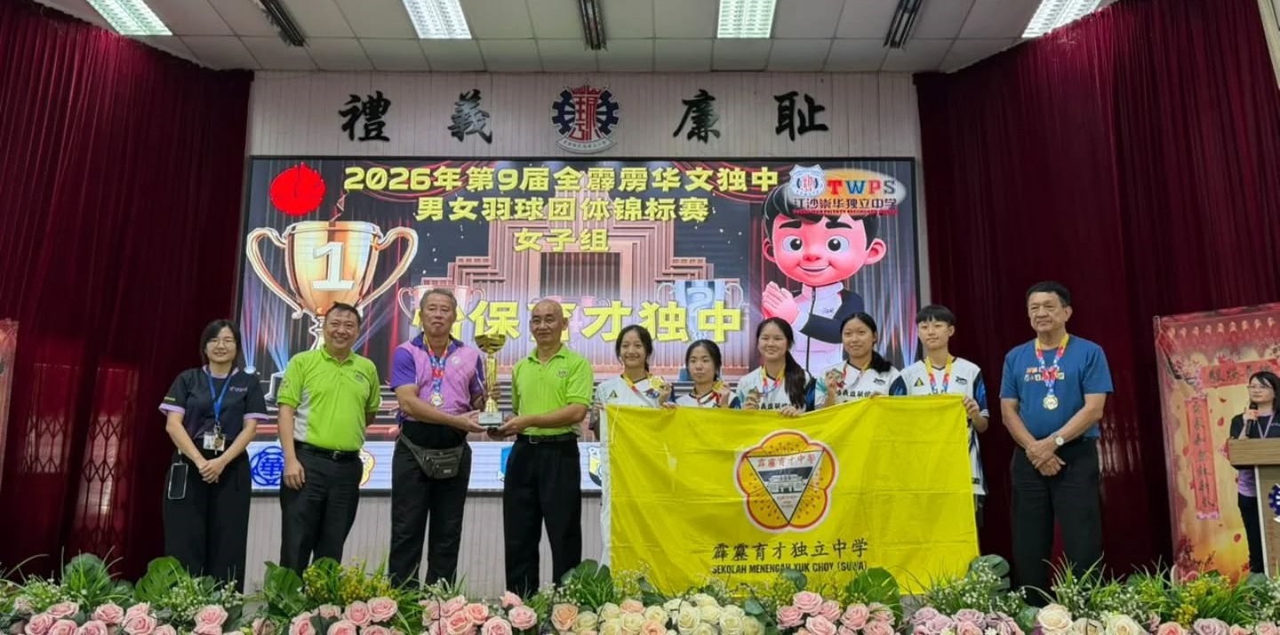 恭喜本校羽球队于“2026年第9届全霹雳华文独中男女羽球团体锦标赛”中,获得女子组冠军及男子组季军。