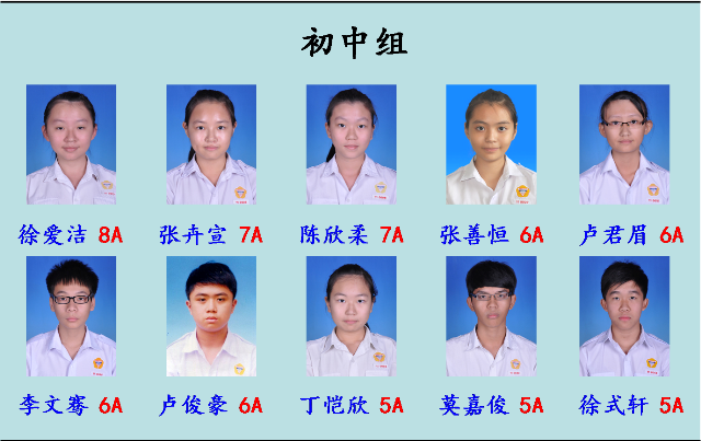4A:梁维正、刘宗俊、丘颖瀚、曾伊彤、明佩珊、陈筱薇、蔡宏凯、许家键、李百杰、潘德华
