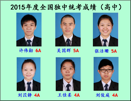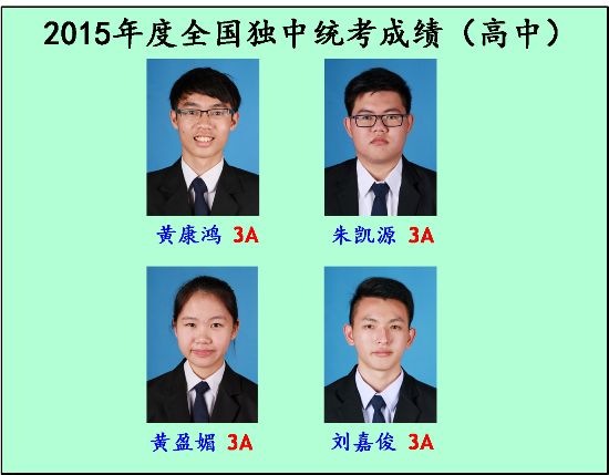 第41届全国独中统一考试(统考)日前放榜,本校共有21名高中考生考获3科A以上的成绩,并有8名学生荣膺全国特出考生。