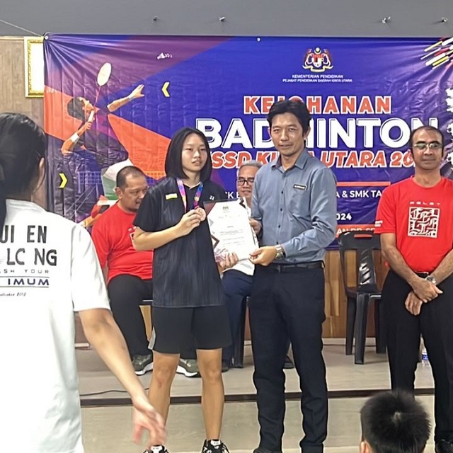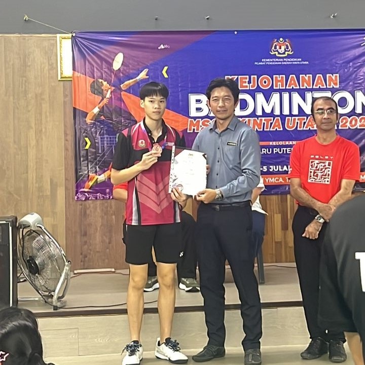 2024年北近打县学联(MSSD Kinta Utara)羽球锦标赛 Kejohanan Badminton MSSD Kinta Utara Tahun 2024 日期:7月2日至7月5日 地点:Arena Badminton YMCA 黄文熙(高二商2):18岁男子组 季军 吴紫绮(高一文):18岁女子组 冠军 梁靖儿(高二理):18岁女子组 季军 廖可儿(初三忠):18岁女子组 第4名 (照片由体育处提供)