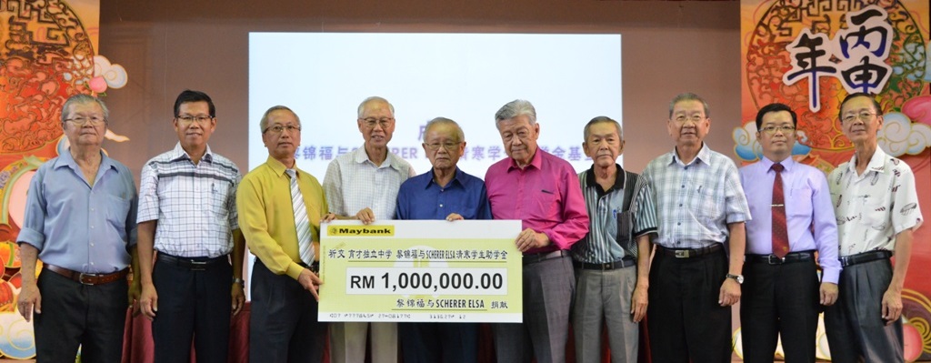 配合4月1日独中复兴纪念日,本校旅居瑞士校友黎锦福医生宣布成立《黎锦福与SCHERER ELSA清寒学生助学基金》,并捐献100万令吉予该基金会,以协助本校的清寒学生完成中学学业。