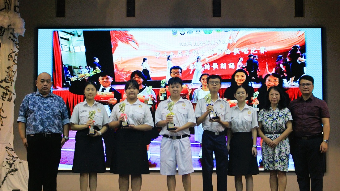 摄影:黄旖馨(高一理)、冯悦莹(初二忠) 2025年全霹雳华文独中第8届华语诗歌朗诵比赛:初中组冠军、高中组季军、第29届华语文艺歌曲歌唱比赛:初中男生组冠军、女生组优胜奖、高中男生组亚军、女生组优胜奖