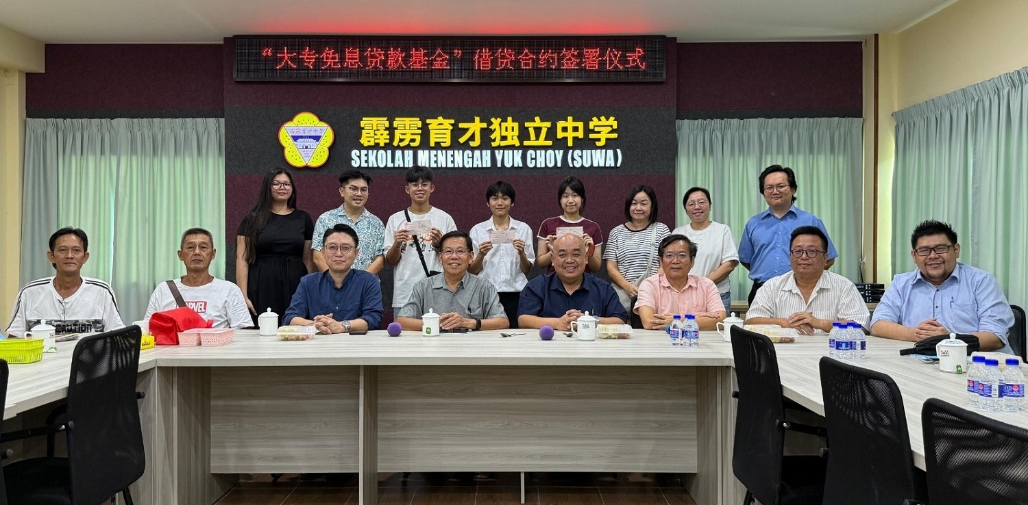 大专免息贷款签约仪式 2025年8月14日发布 本校于近日举行“大专免息贷款基金”借贷合约签署仪式,共有三位符合资格的高中毕业生获得免息贷款,总额达2万1000令吉,以助他们顺利踏上海外求学之路。 今年受惠的高中毕业生是2021年高三理班毕业生许世民(国立阳明交通大学药学系)、2022年高三汽修班毕业生黄宇航(南台科技大学机械工程系)以及2024年高三理班毕业生黄威信(国立中山大学机械与机电工程系)。 董事会财政刘子真表示,免息贷款不仅是一笔金钱资助,更承载着母校、社会及师长的关怀与期望,盼学生们全心求学、谨慎理财,并在毕业后按时归还贷款,让计划得以延续,造福更多学弟妹。 黎镇光校长感谢先贤们多年来坚持推动免息贷款,减轻了许多家庭的经济负担,也勉励学生们饮水思源,将来以优异成就回馈母校与社会。签约仪式的见证者包括董事会执行秘书余依程、刘国荣副校长、辅导处主任许环伟老师、助理丘明申老师、陈志文老师及实习生周梓珊。 华语月表演